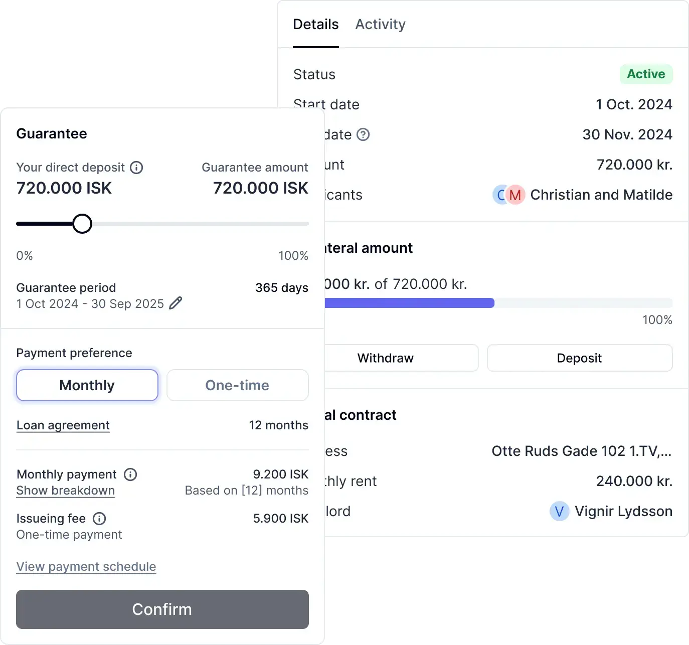 Þú getur borgað mánaðarlegt gjald í stað þess að greiða tryggingafjárhæðina að fullu við upphaf leigutímabilsins.